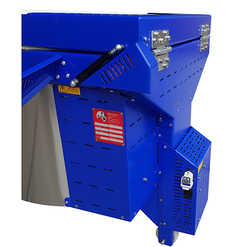 - Electrical components strategically positioned at the rear and low level of the kiln.