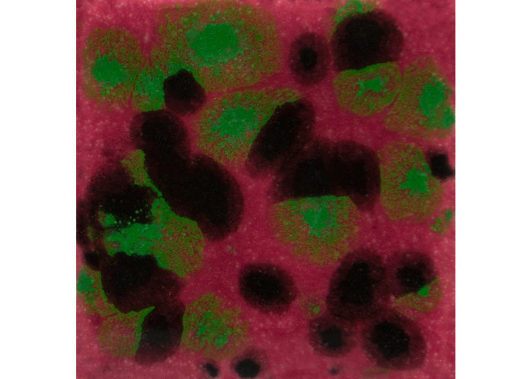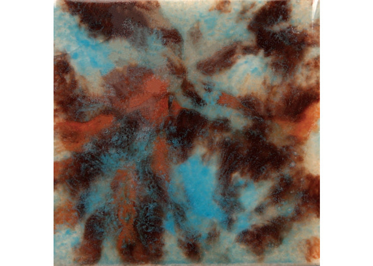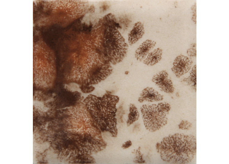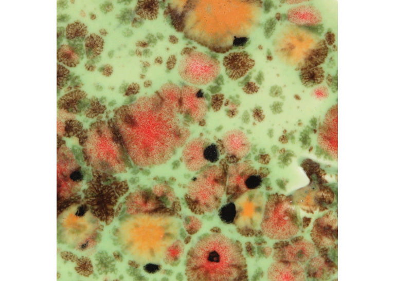 At higher temperatures (up to cone 6): Base colours remain but crystals move more — producing increased flow and softer edges. Always test first on your clay body.