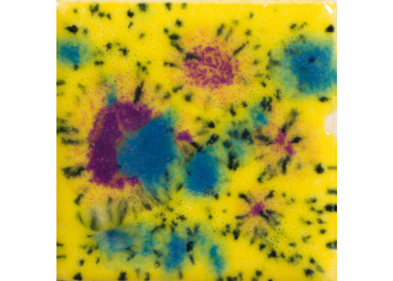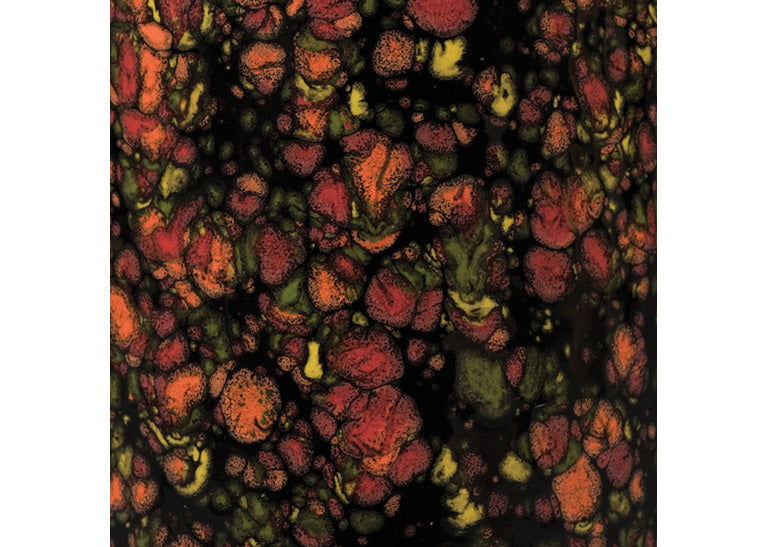 Crystals bloom into colour – glass frits melt and spread to form dramatic, organic patterns.